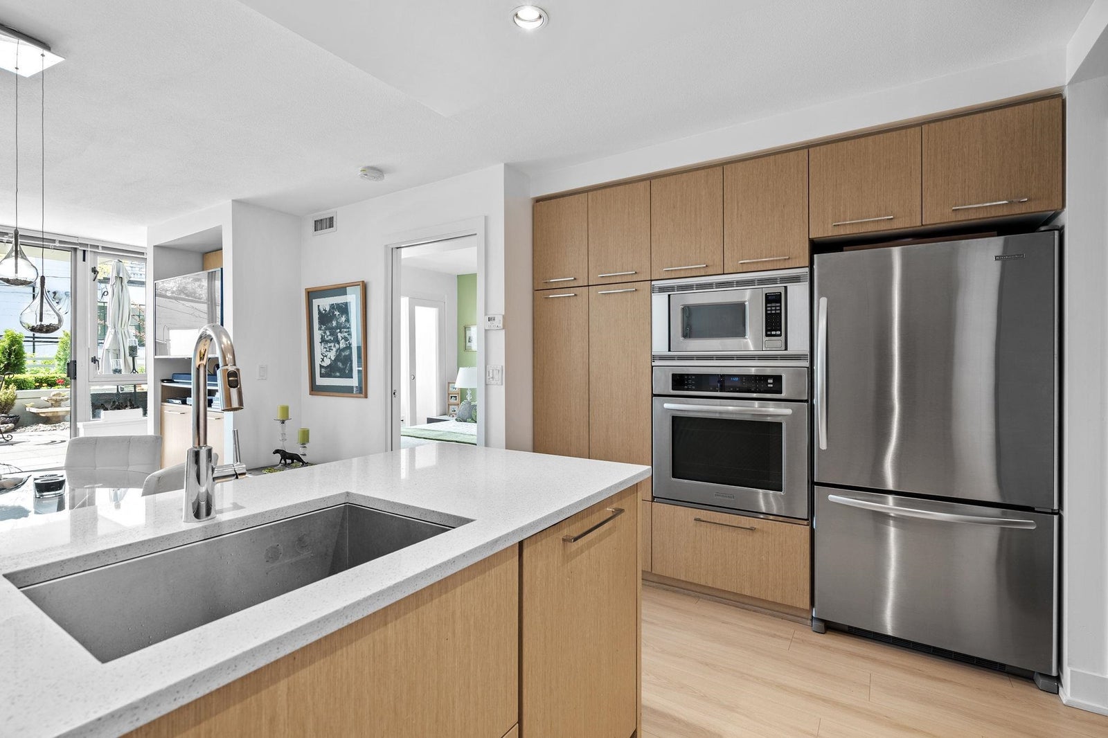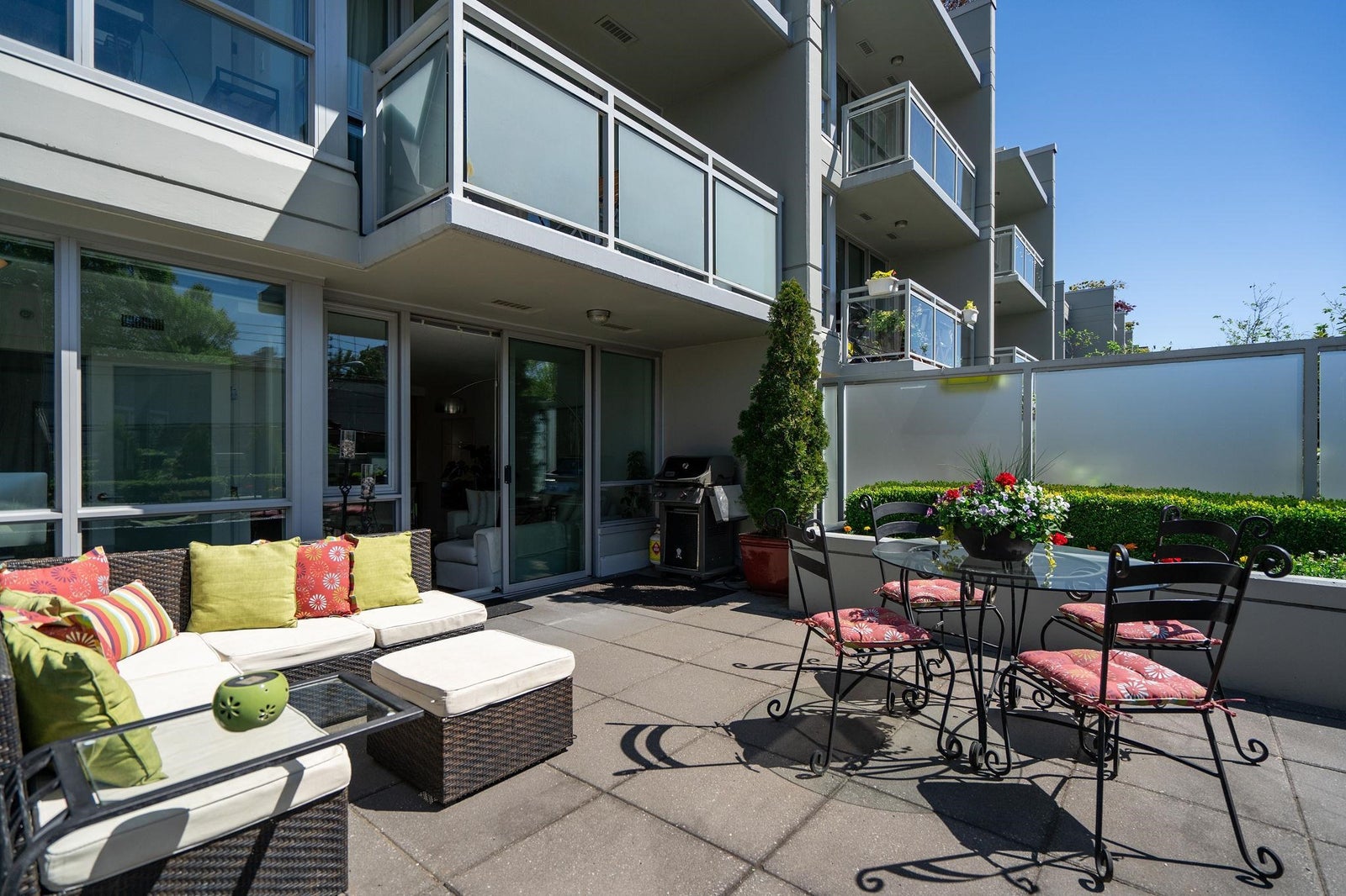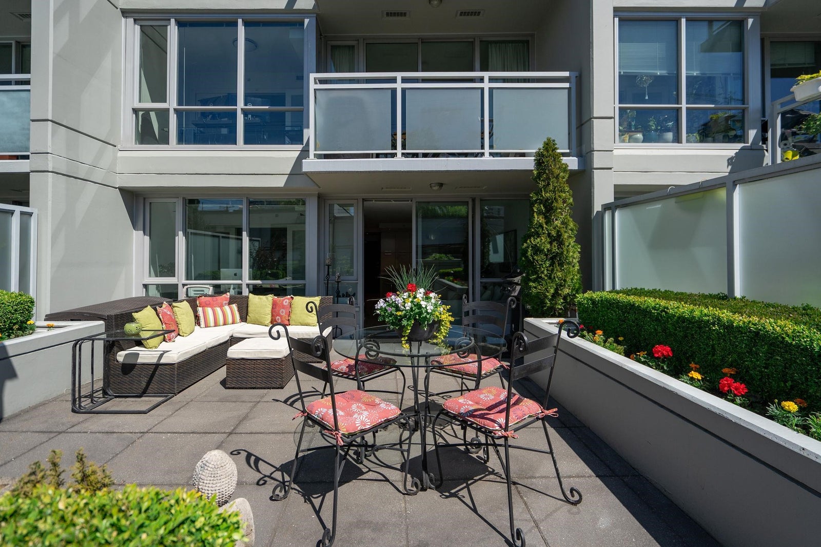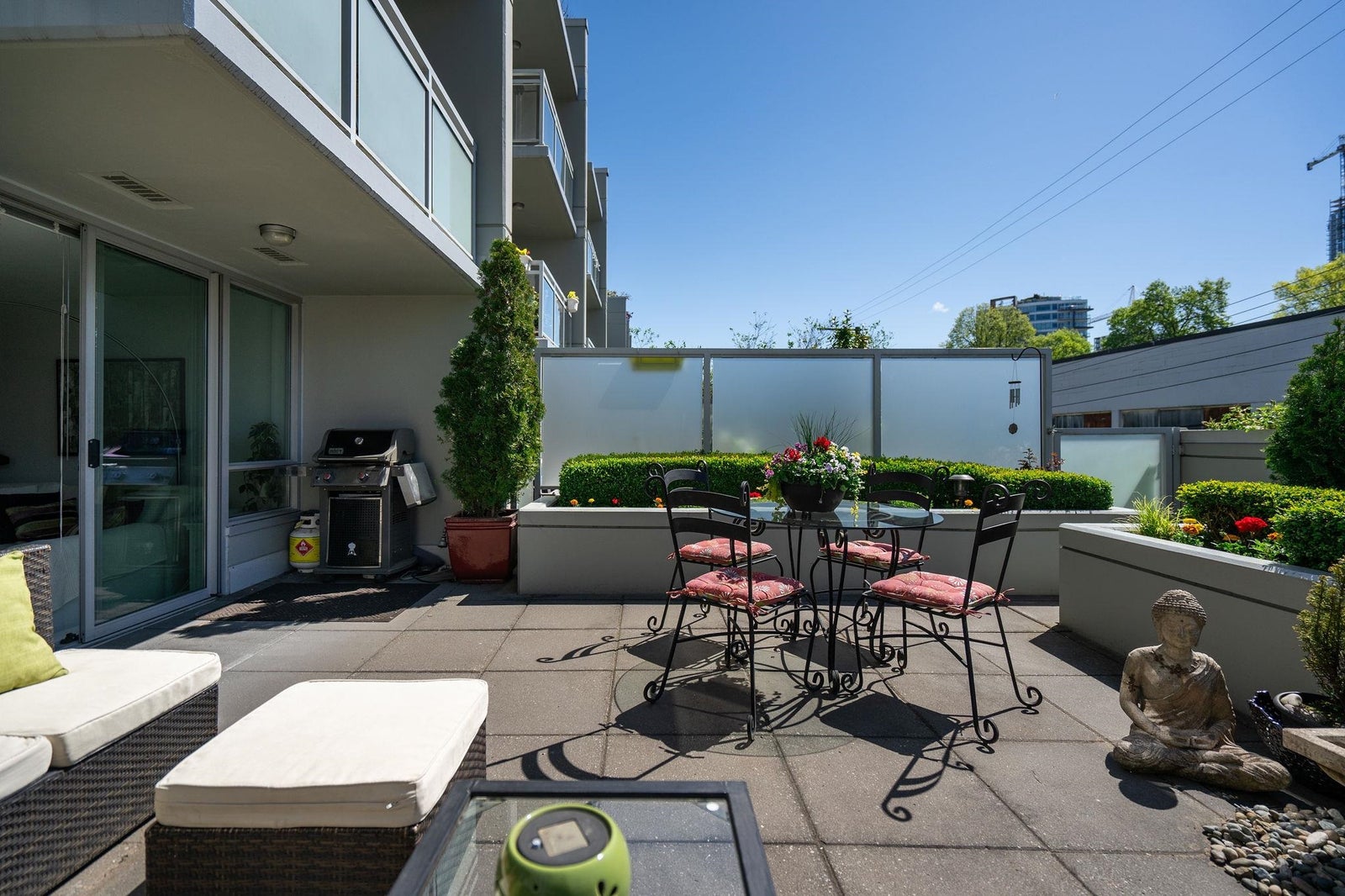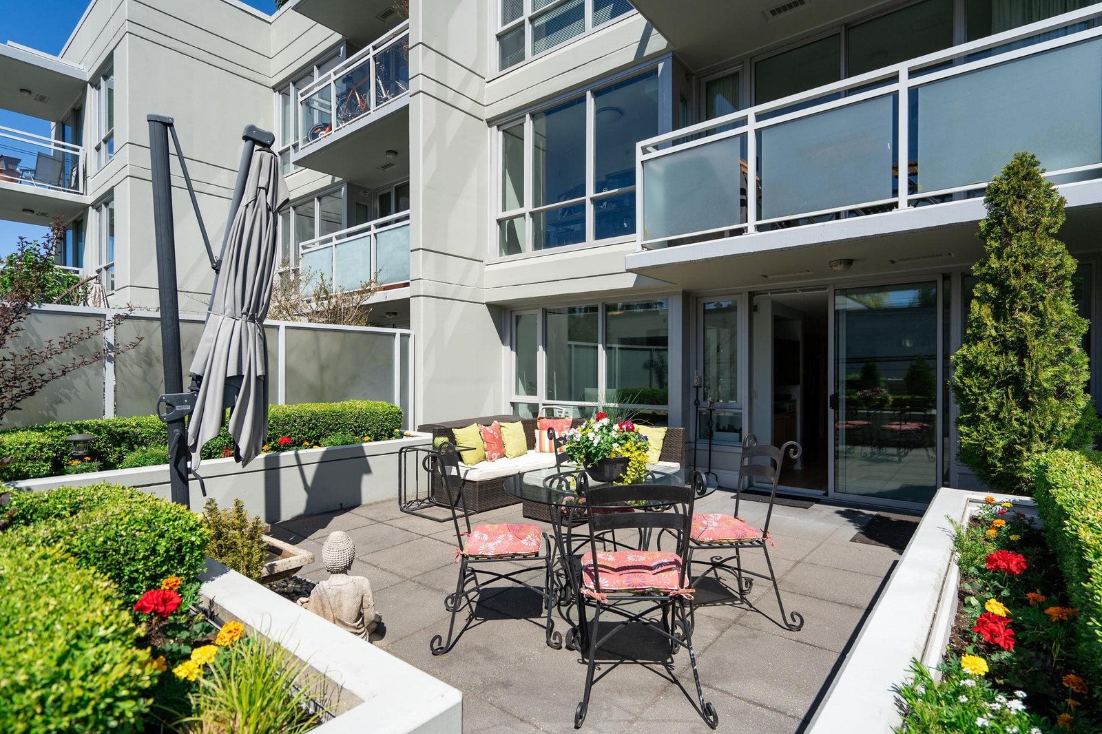 Summer is almost here and what better way to enjoy it then by relaxing on a private 505sf south-facing patio surrounded by beautiful landscaping & greenery! Welcome to “Mantra” - built by award-winning developer, Cressey. This beautiful 1bed+den home is built with top-of-line craftsmanship & has no wasted space. It feats new laminate & carpet flooring, AC, a spacious bedroom w/ walk-in closet, a bright den perfect for a home office, a signature Cressey kitch w/ integrated FULL-SIZE appliances & ample storage space, & a massive patio that is perfect for lounging in the sun or hosting a summer BBQ. Centrally located in the desirable Fairview neighbourhood with W 4th’s lively shops & restaurants right at your doorstop & just a short walk to the touristy Granville Island, Kitsilano & seawall!