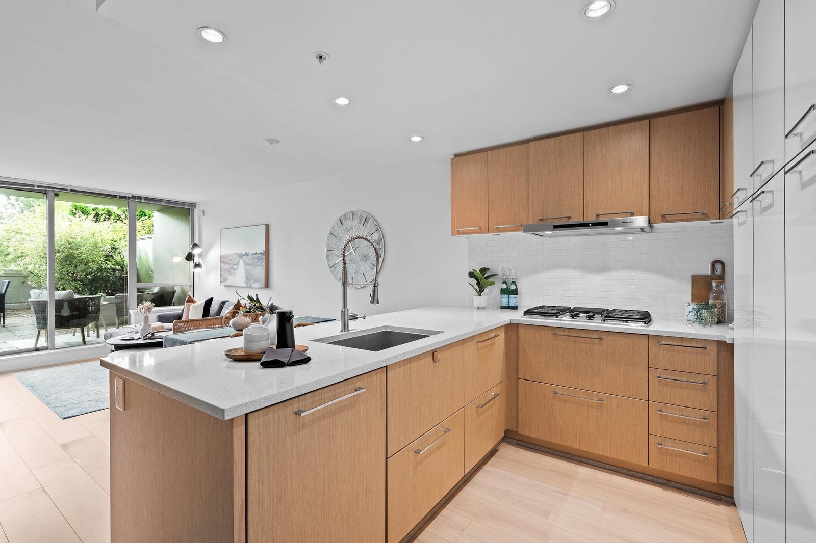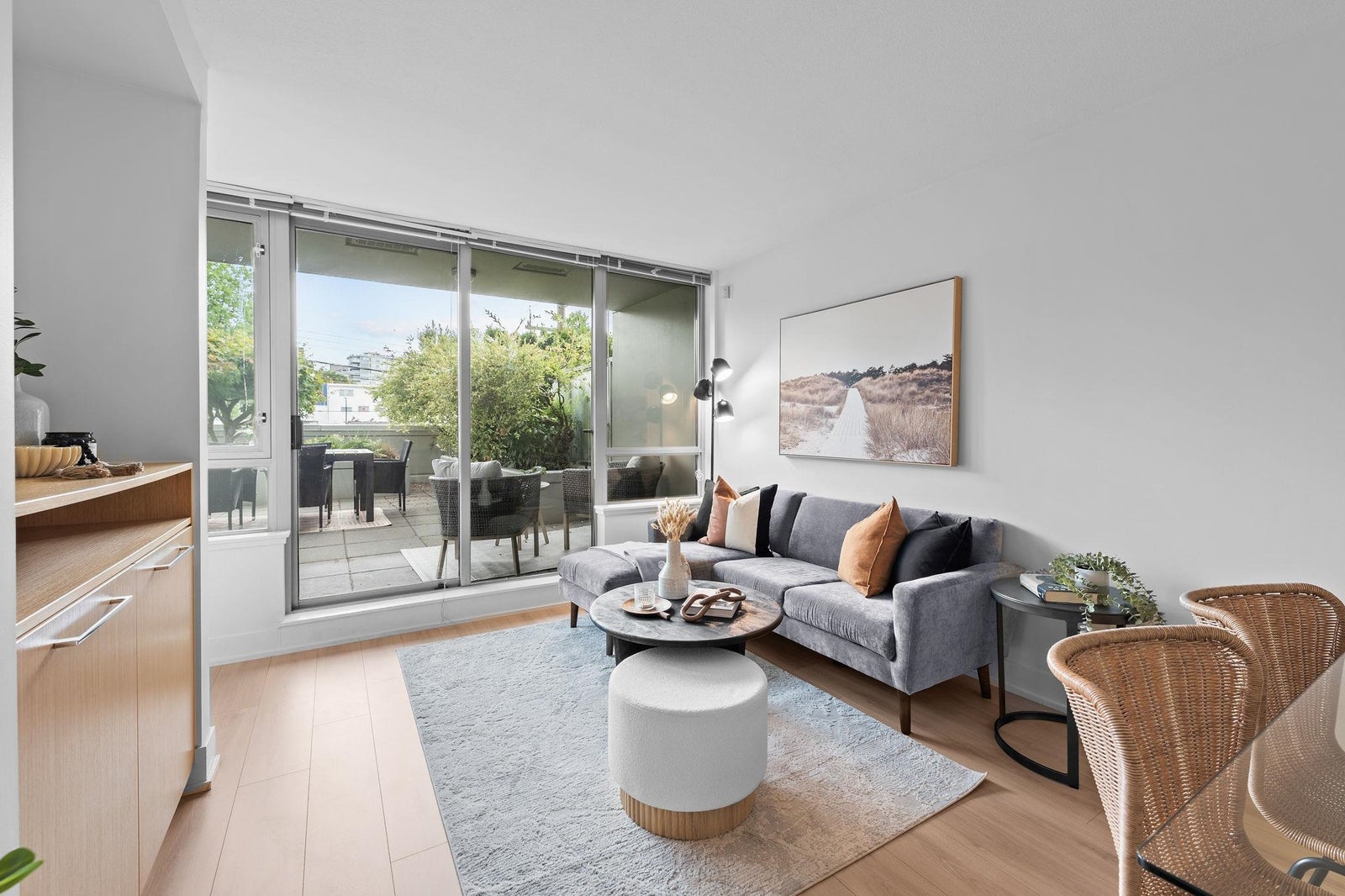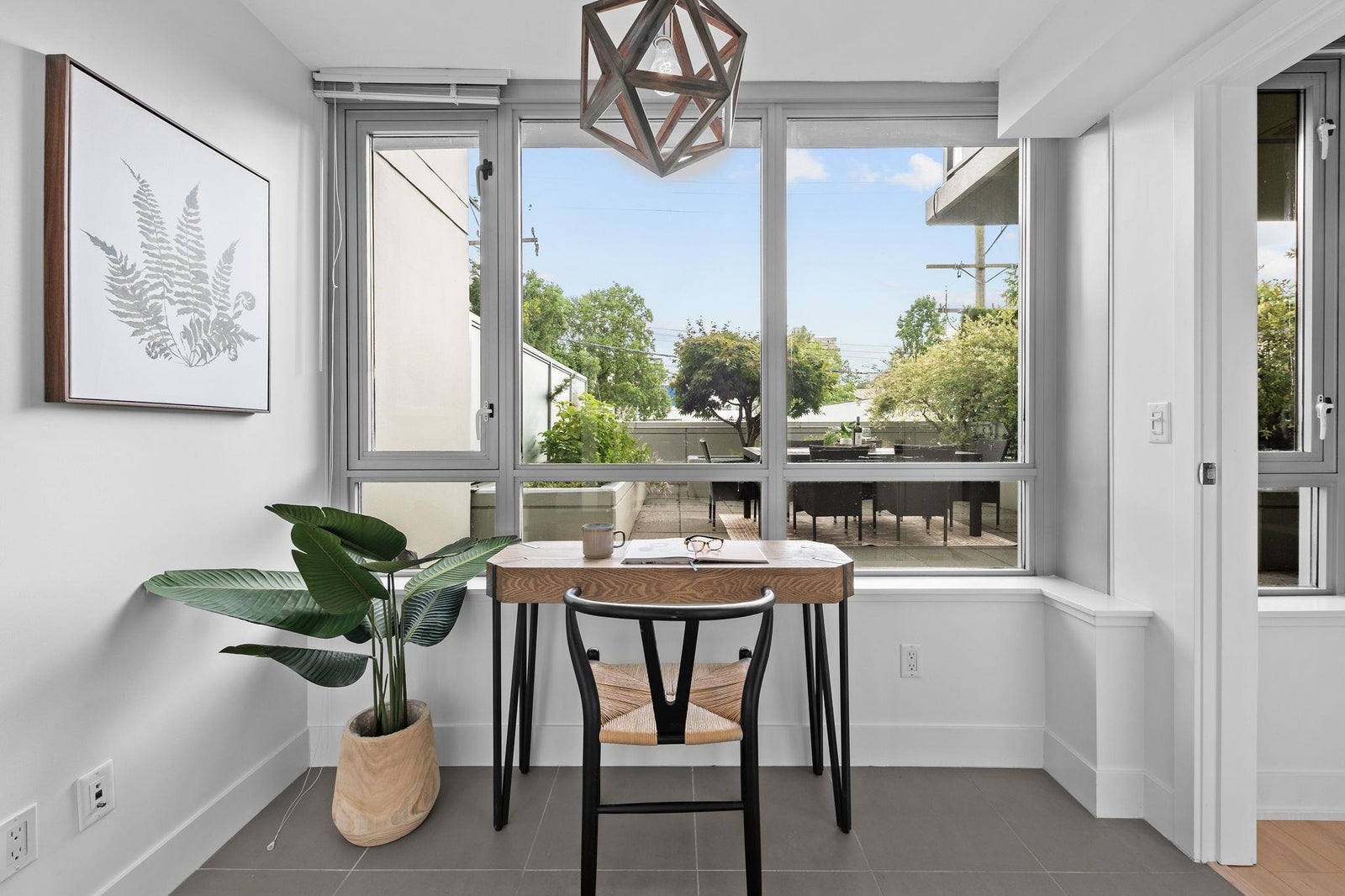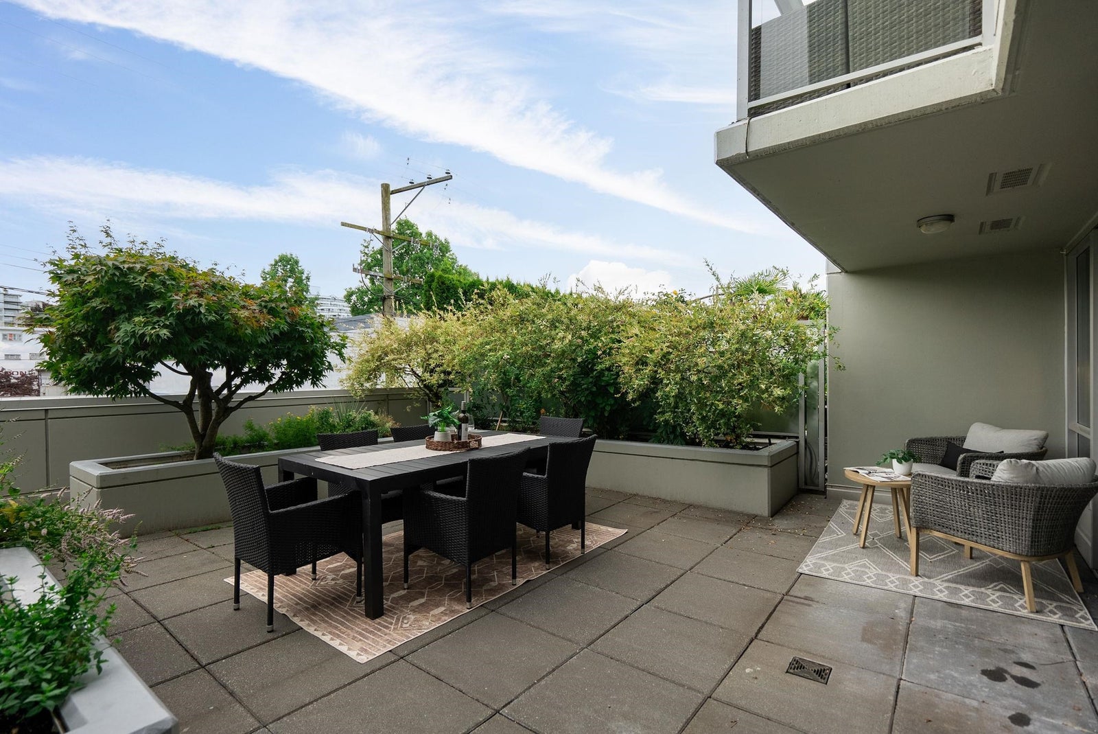 Summer is here and what better way to enjoy it than by relaxing on a private 505sf south-facing patio surrounded by beautiful landscaping & greenery! Welcome to “Mantra” - built by award-winning dev, Cressey. This beautiful 1bed+den home has no wasted space & feats fresh paint, laminate flooring, AC, 2 parking, a spacious bedroom w/ walk-in closet, a bright den perfect for a home office, a signature Cressey kitch w/ integrated FULL-SIZE appliances & ample storage space & a massive patio that is perfect for lounging in the sun or hosting a summer BBQ. Centrally located in the desirable Fairview neighbourhood with W 4th’s lively shops & restaurants right at your doorstop & just a short walk to the touristy Granville Island, Kitsilano & seawall!