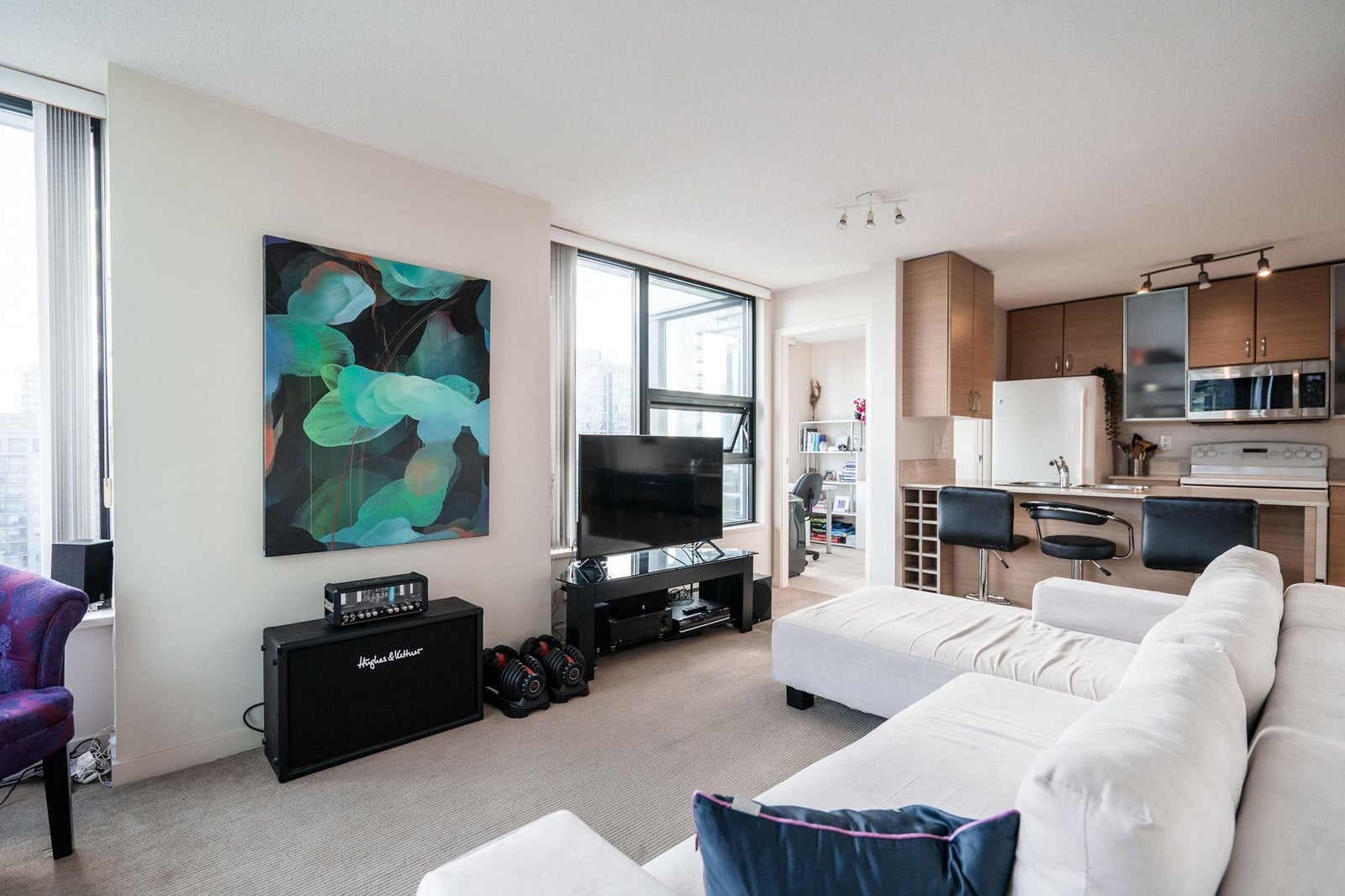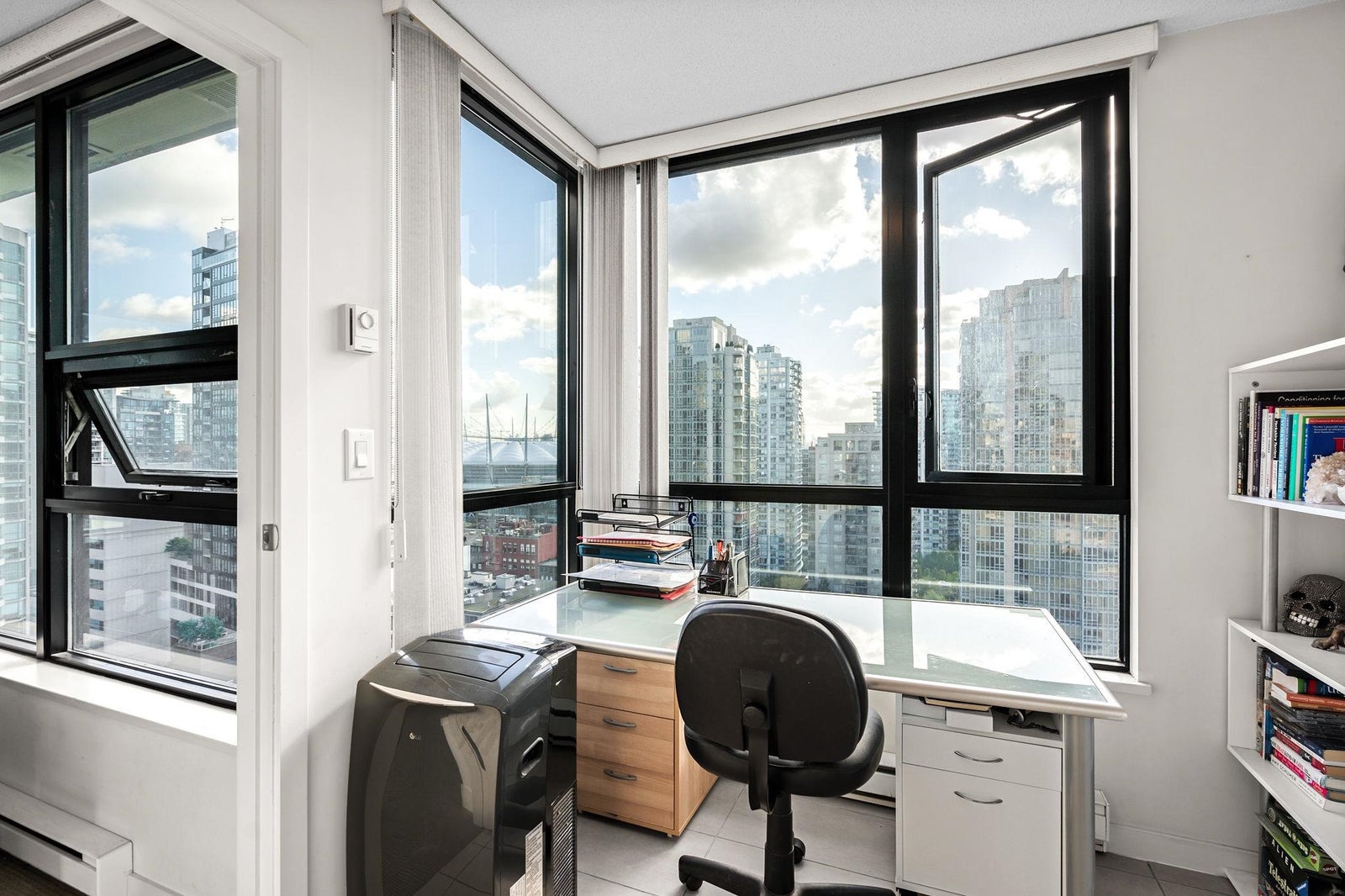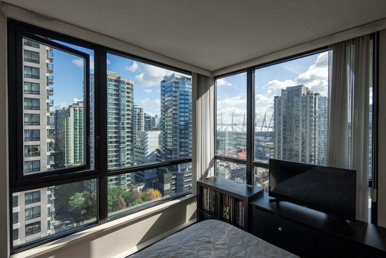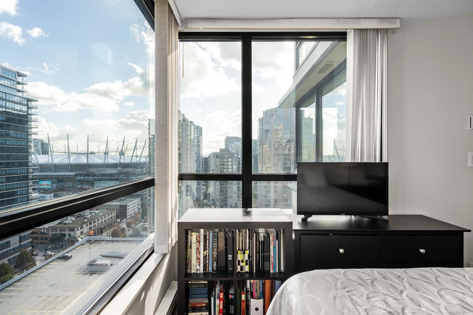 RARELY AVAILABLE one-bedroom plus solarium AND den corner unit in the sought-after 'Yaletown Park 3' building. The '05' plan offers one of the largest one-bedroom floorplans in the building and boasts beautiful city views from BC Place through to Gastown with peek-a-boo views of the North Shore Mountains. The functional layout offers generous room sizes throughout and has a bright solarium that is perfect for a home office or can be used as a small bedroom or nursery. One parking stall and one storage locker are also included. Situated in a well-run building that offers concierge service, an exercise room, meeting room, night security and that allows pets and rentals. One block from transit and Yaletown's award-winning restaurants, bars and shops.