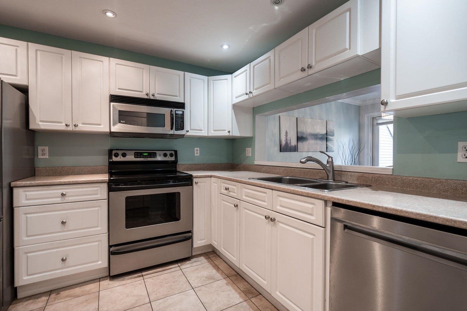 Presenting Colony Bay! This incredibly spacious 2 bed + huge den (14’x9’) home is perfect for a family. A corner unit with lots of windows, a cozy gas f/p, and 3 patios (217sqft of outdoor area) for catching the sun at all times of day. The unit looks out over green space and is well separated from neighbouring buildings for privacy. Kitchen features newer stainless steel appliances and tons of storage, and opens into a large laundry/storage/pantry area. Bedrooms are spacious and have great closets. Vinyl Floors recently installed throughout. Lots of visitor parking with EV Charging. RAINSCREENED in 2022. BONUS: 2 underground PARKING stalls and a storage locker. Call us to schedule your viewing now; you won’t want to miss this one.