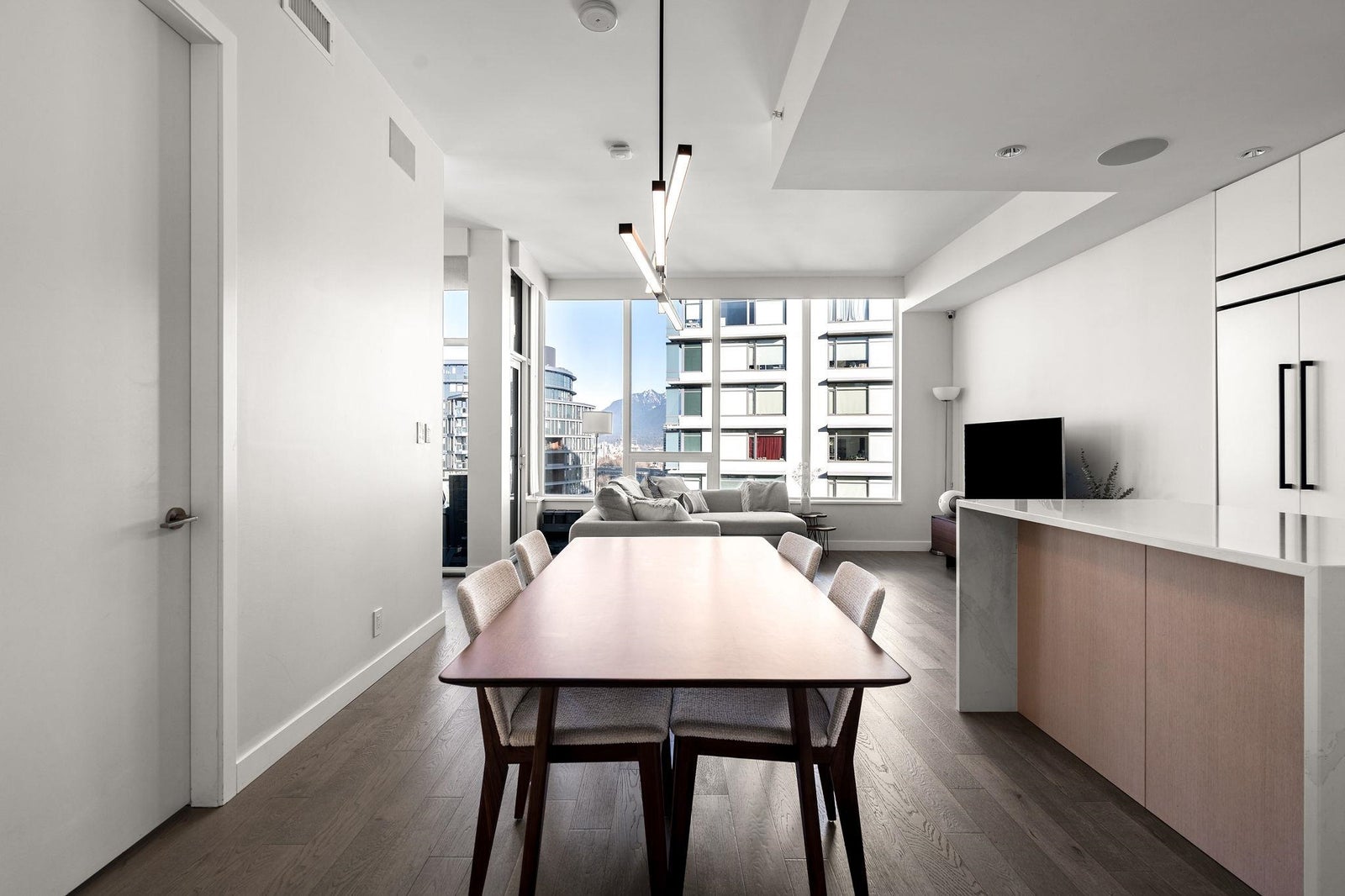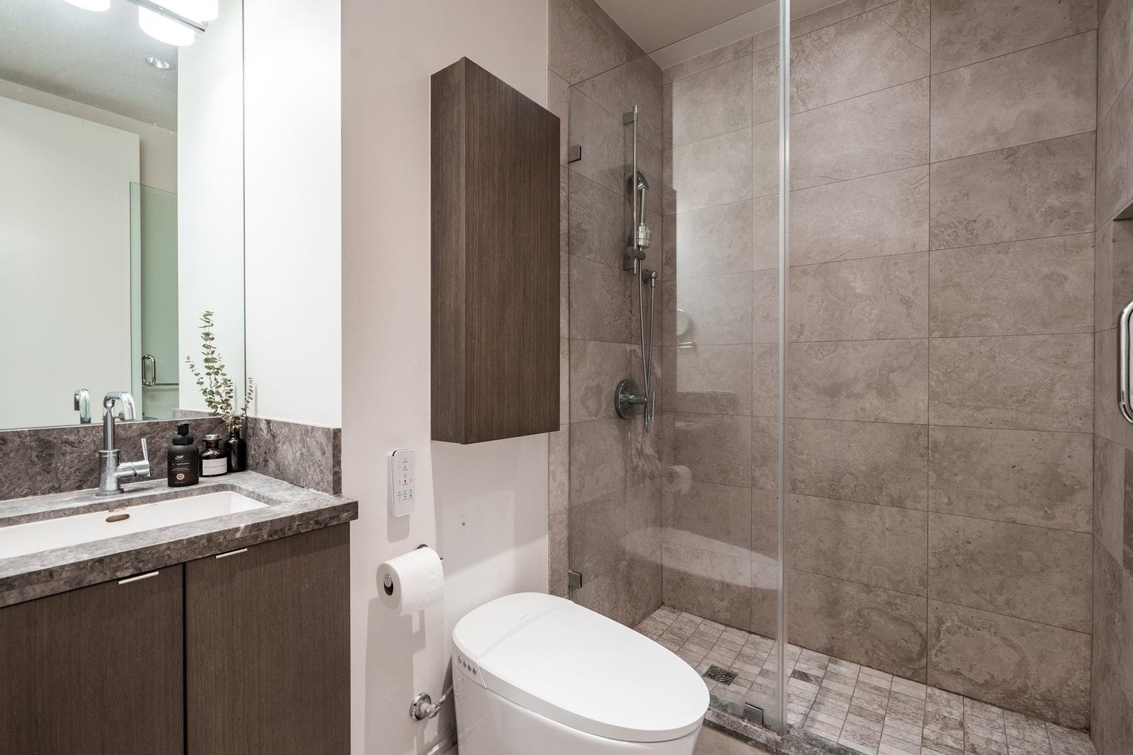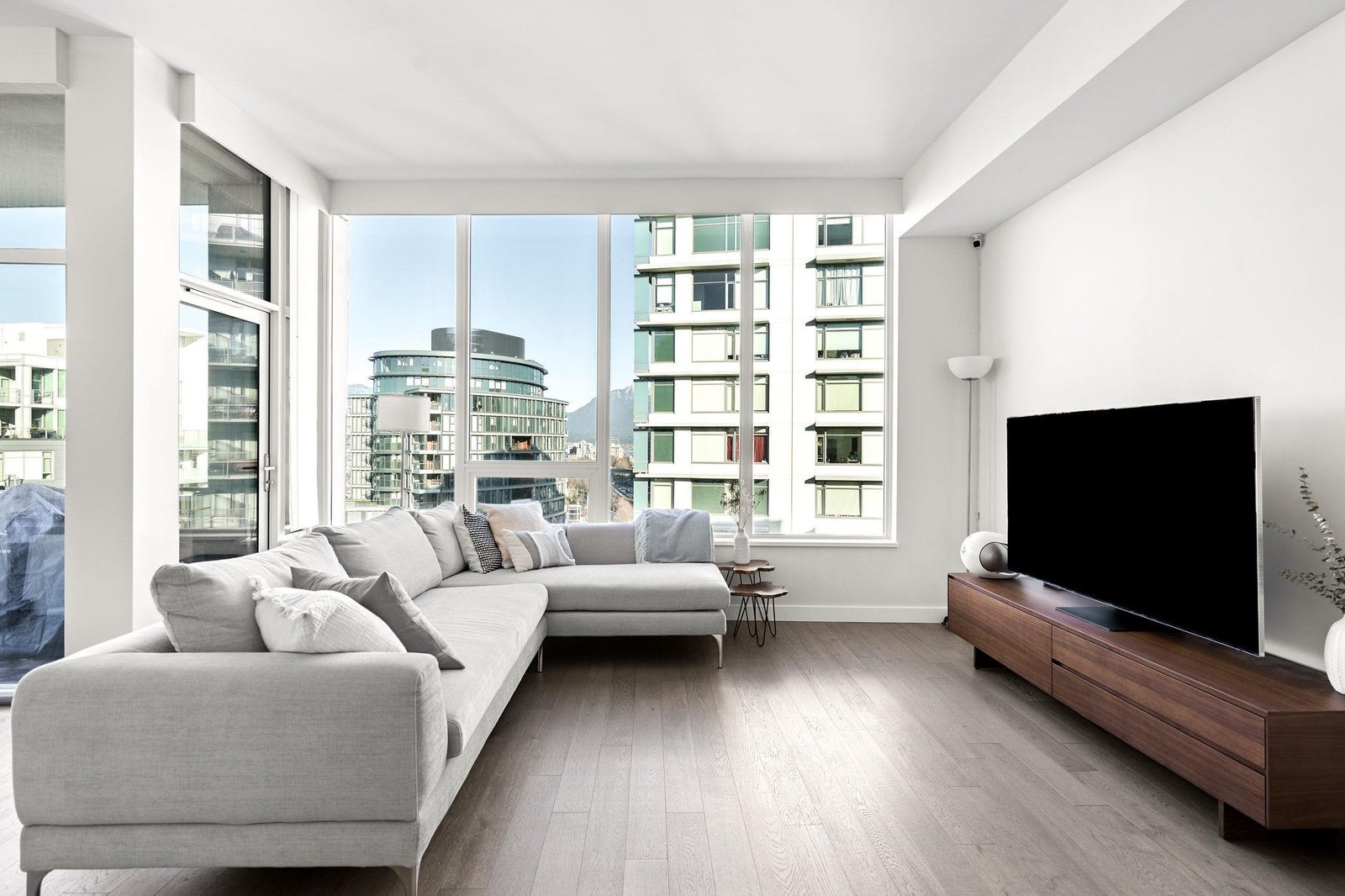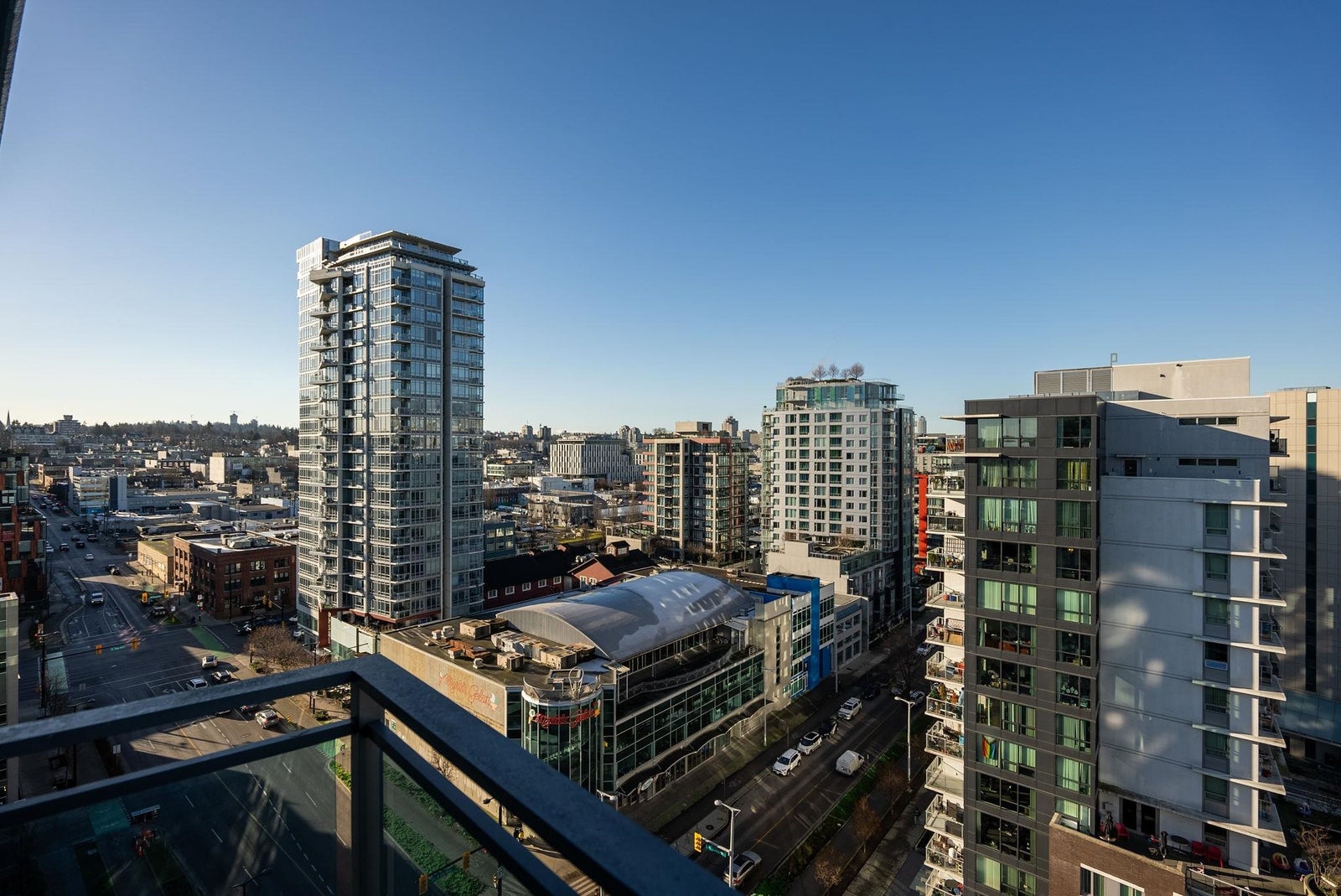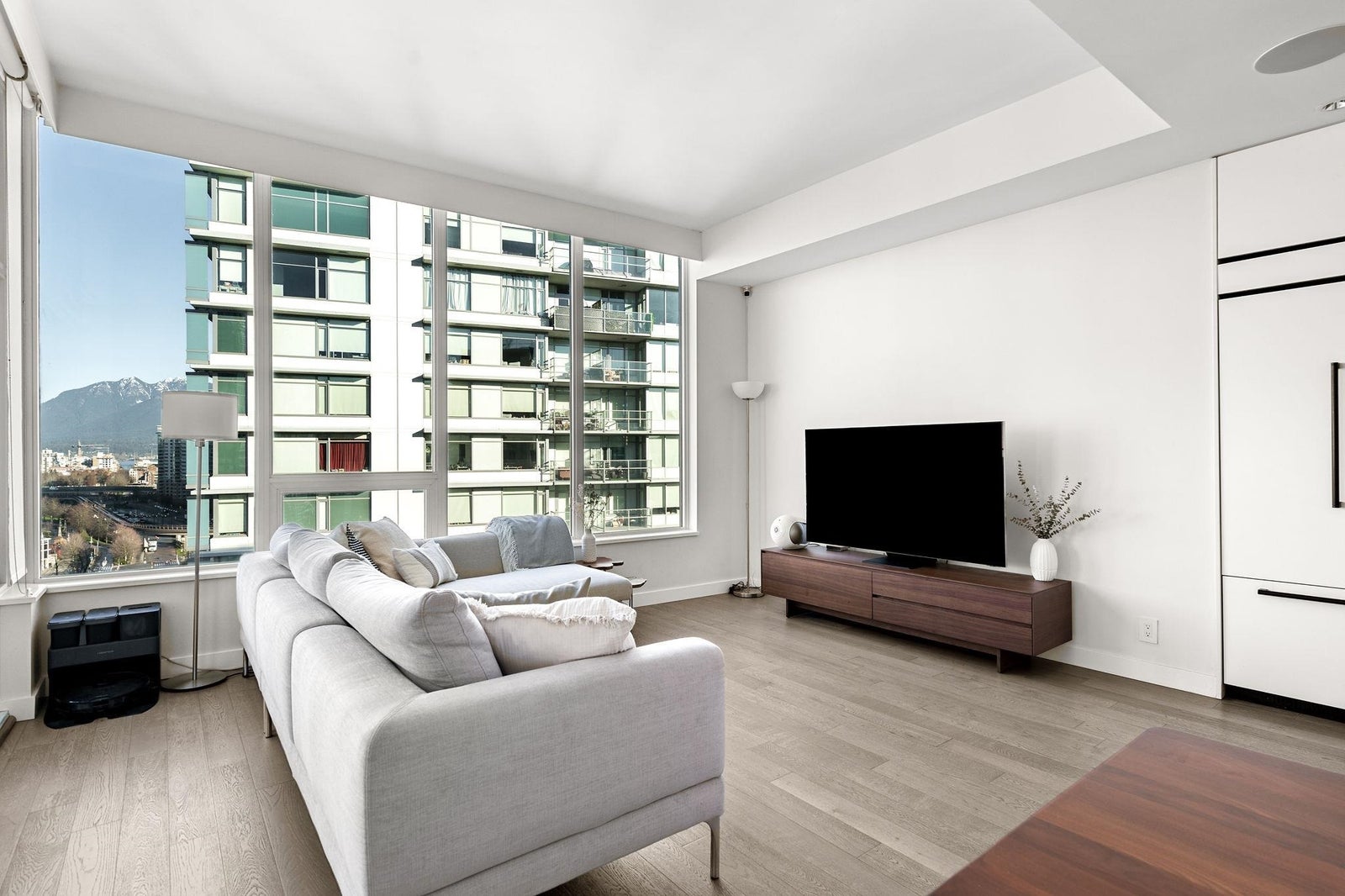 Welcome to the NW sub-penthouse at 'Block 100!' This stunning 3bed/2bath home comes with all the bells & whistles & has no wasted space in the nearly 1200sf that it has to offer. Kitchen & both bathrooms have been tastefully updated w/chic cabinetry, stone counters, gas cooktop, full size s/s and integrated appliances, and smart tech toilets. Boasting 10' ceilings throughout the entire home & offering beautiful partial views of Science World, NS Mountains & through to Van Harbour. This exquisite home has AC & comes with a PRIVATE 2car garage & massive 235sf storage room. This well-run buildings offers over 5000sf of indoor/outdoor amenity space incl a gym, 2 lounges & concierge. Situated in the heart of Olympic Village & close to all amenities!