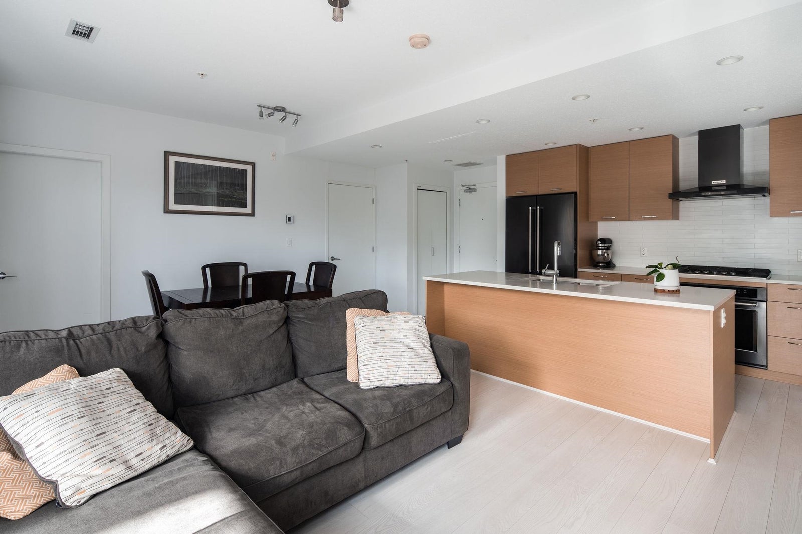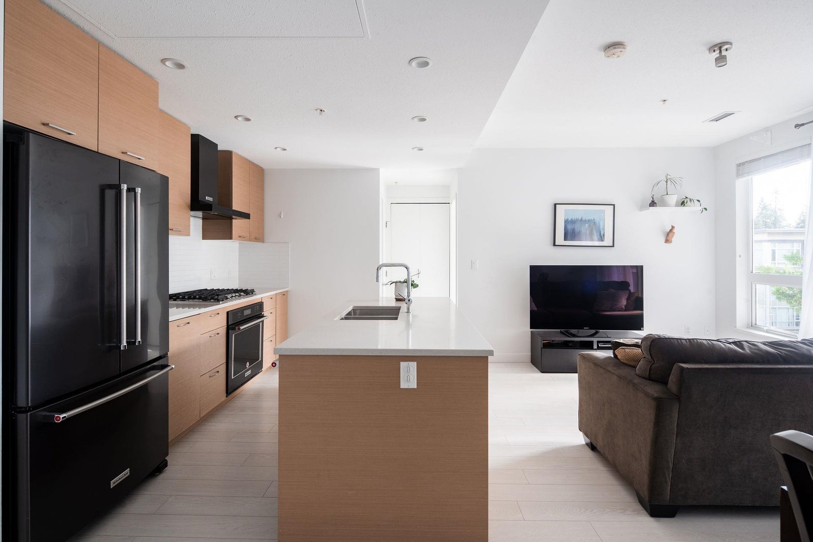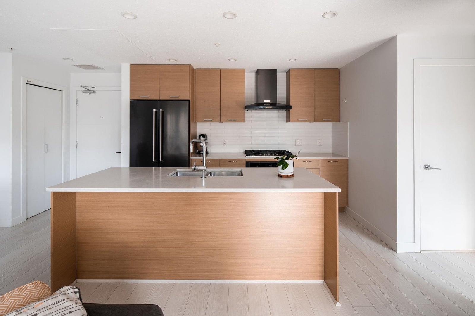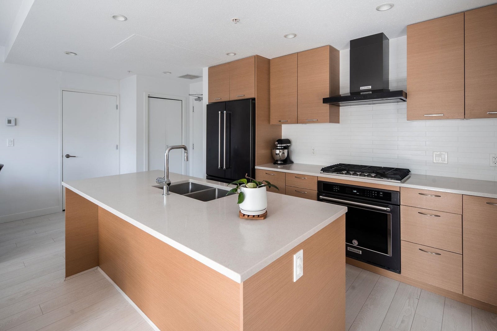 Welcome home to this spacious 3bed/2bath sub-penthouse situated on the quiet side of the building. Built by award winning developer, Adera, with quality craftsmanship throughout the sprawling 991sf layout. Enjoy generous room sizes throughout, a large deck overlooking the central zen garden, AC, a spacious open kitchen with a gas cooktop, quartz countertops, and commodious island with built-in sink and breakfast bar. One parking stall with EV CHARGER and one storage locker are included with this home. 'Virtuoso' is situated in the heart of Wesbrook Village and is surrounded by natural beauty - you won't have to go far to get to all of your desired amenities, stunning walking trails and beautiful beaches. This welcoming UBC community is waiting for you!