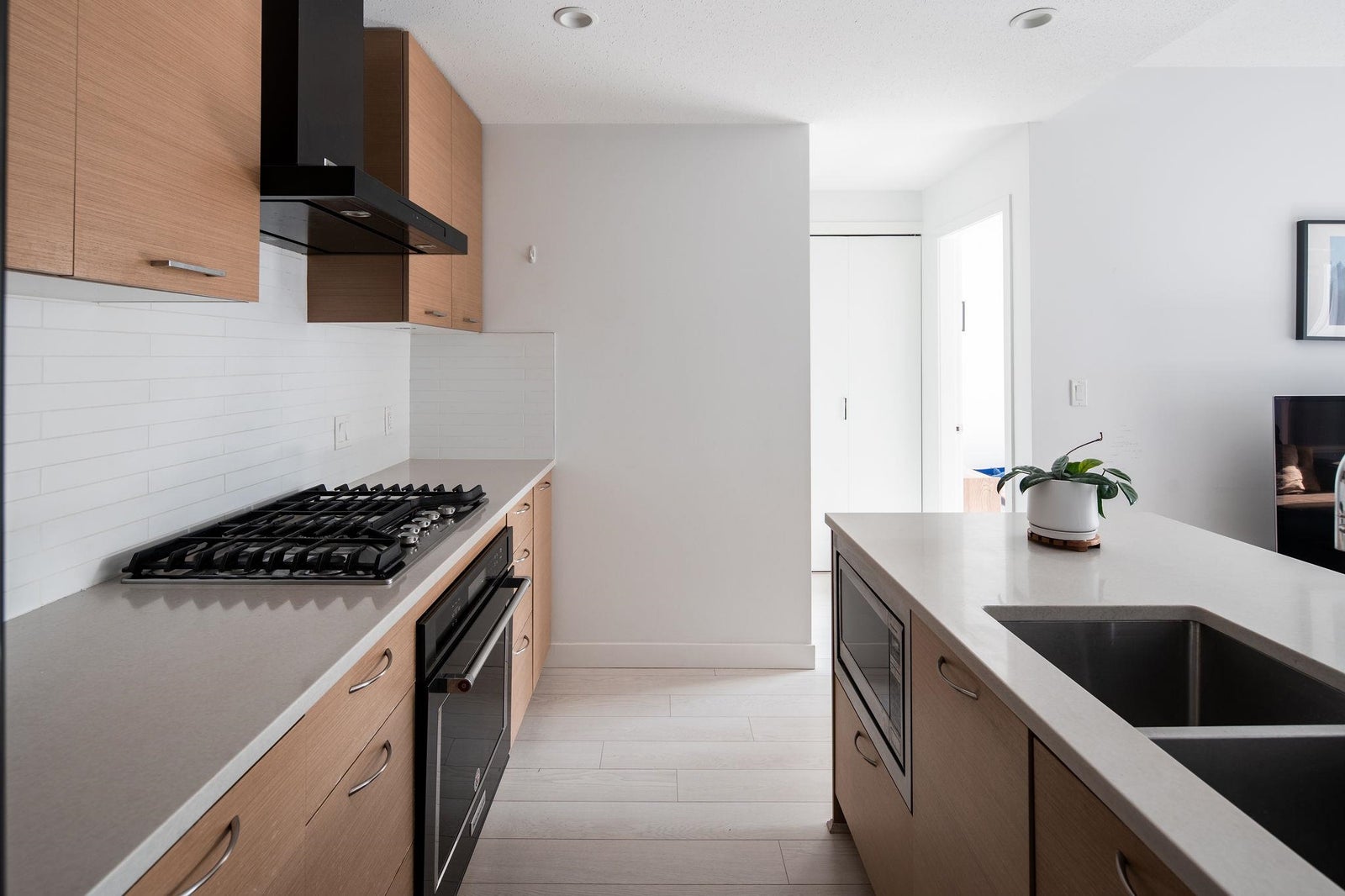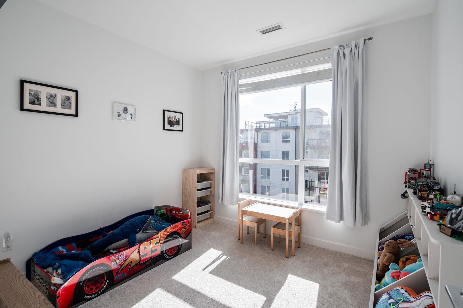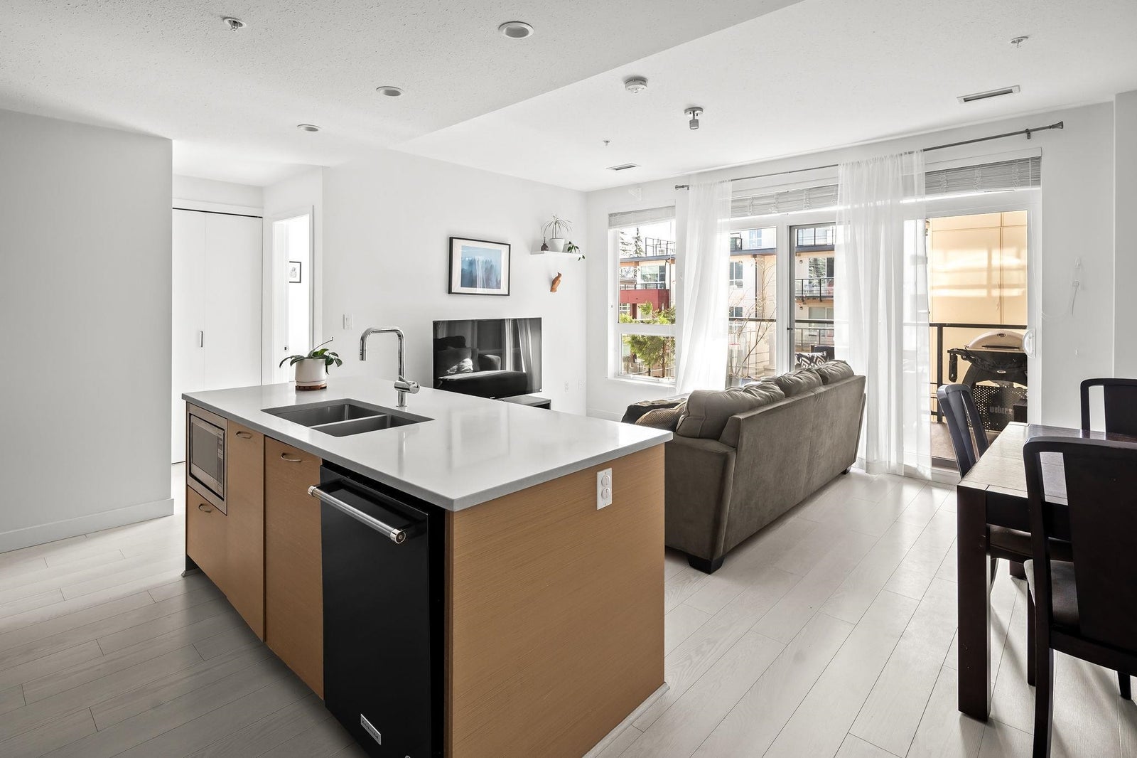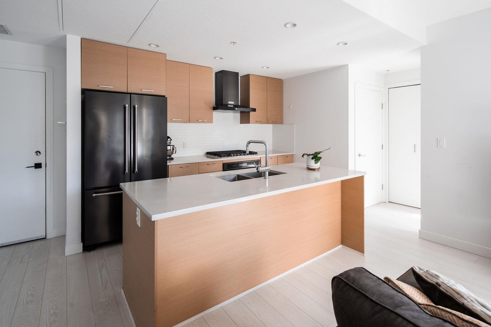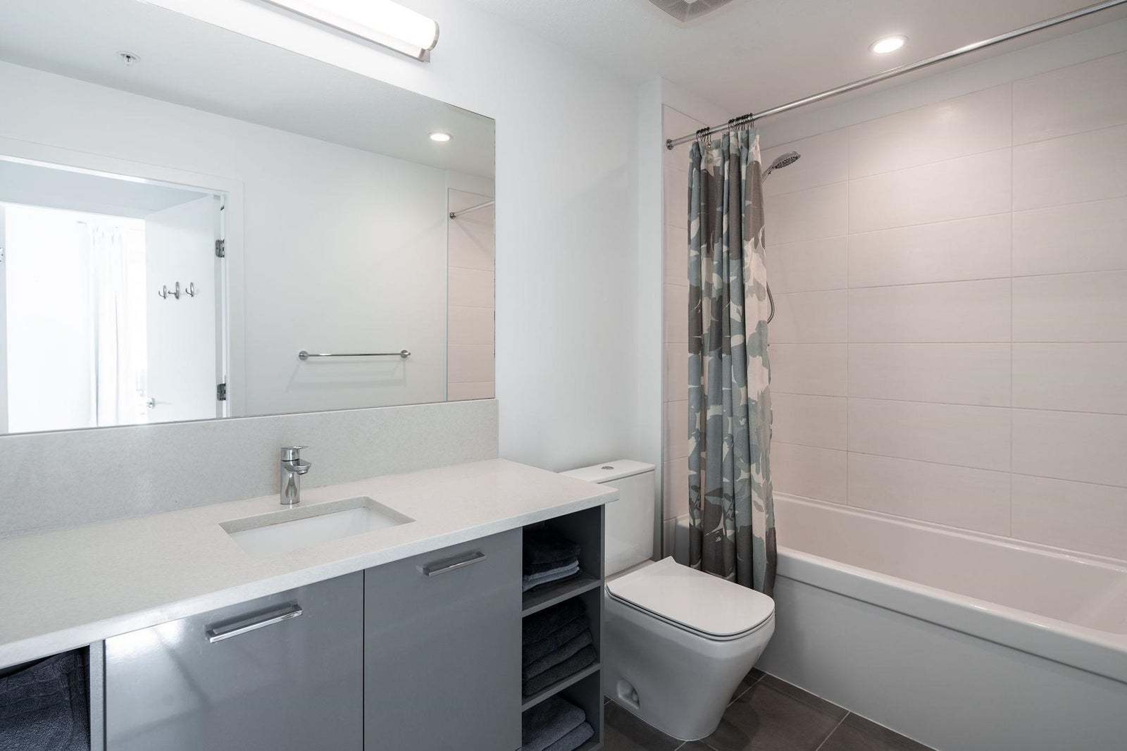 Welcome home to this spacious 3bed/2bath sub-penthouse situated on the quiet side of the building. Built by award winning developer, Adera, with quality craftsmanship throughout the sprawling 991sf layout. Enjoy generous room sizes throughout, a large deck overlooking the central zen garden, AC, a spacious open kitchen with a gas cooktop, quartz countertops, and commodious island with built-in sink and breakfast bar. One parking stall with EV CHARGER and one storage locker are included with this home. 'Virtuoso' is situated in the heart of Wesbrook Village and is surrounded by natural beauty - you won't have to go far to get to all of your desired amenities, stunning walking trails and beautiful beaches. This welcoming UBC community is waiting for you!