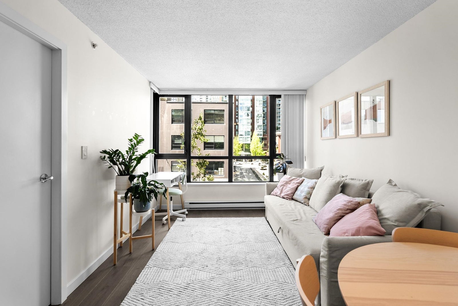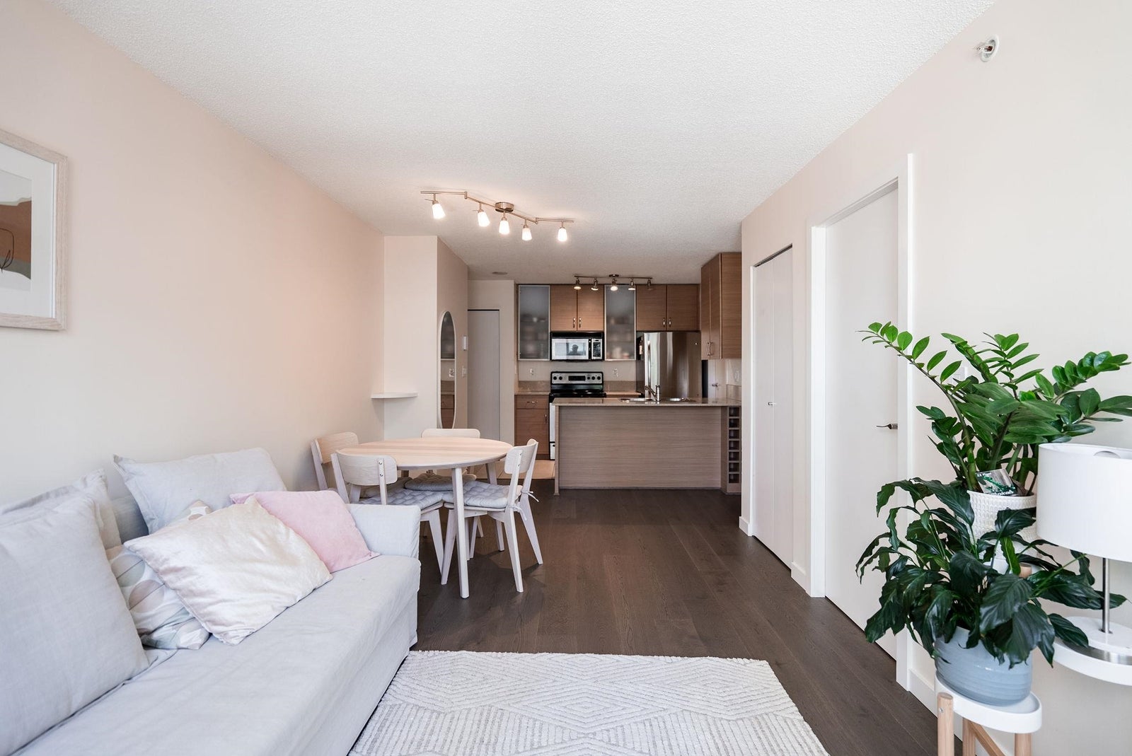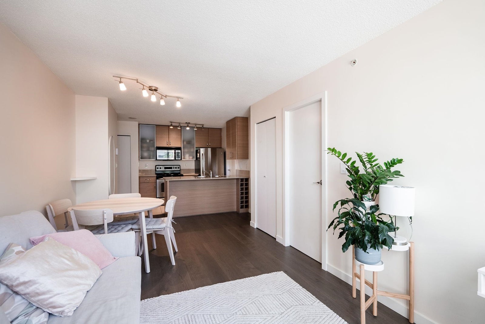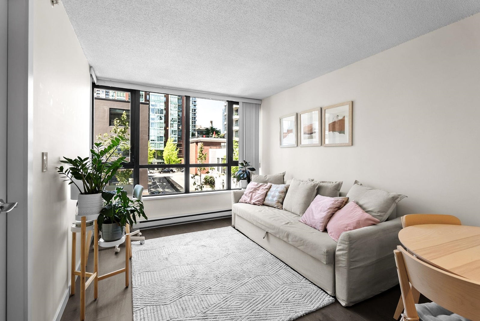 Offering the perfect starter home in a prime Yaletown location! This one-bedroom plus den suite efficiently uses the 586 square feet of it has to offer with generous room sizes throughout and ample storage space. The open kitchen features FULL-SIZE stainless steel appliances and a peninsula island with breakfast bar and built-in wine rack that overlooks the living area large enough to have a proper living room AND dining table. The den off of the kitchen is perfect for a walk-in pantry or additional in-suite storage space. Situated in a well-run building that offers concierge service, an exercise room, meeting room, night security and that allows pets and rentals. One block from transit and Yaletown's award-winning restaurants, bars and shops.