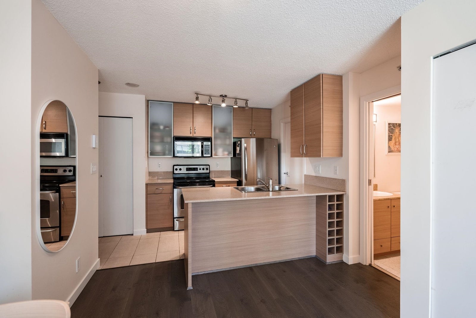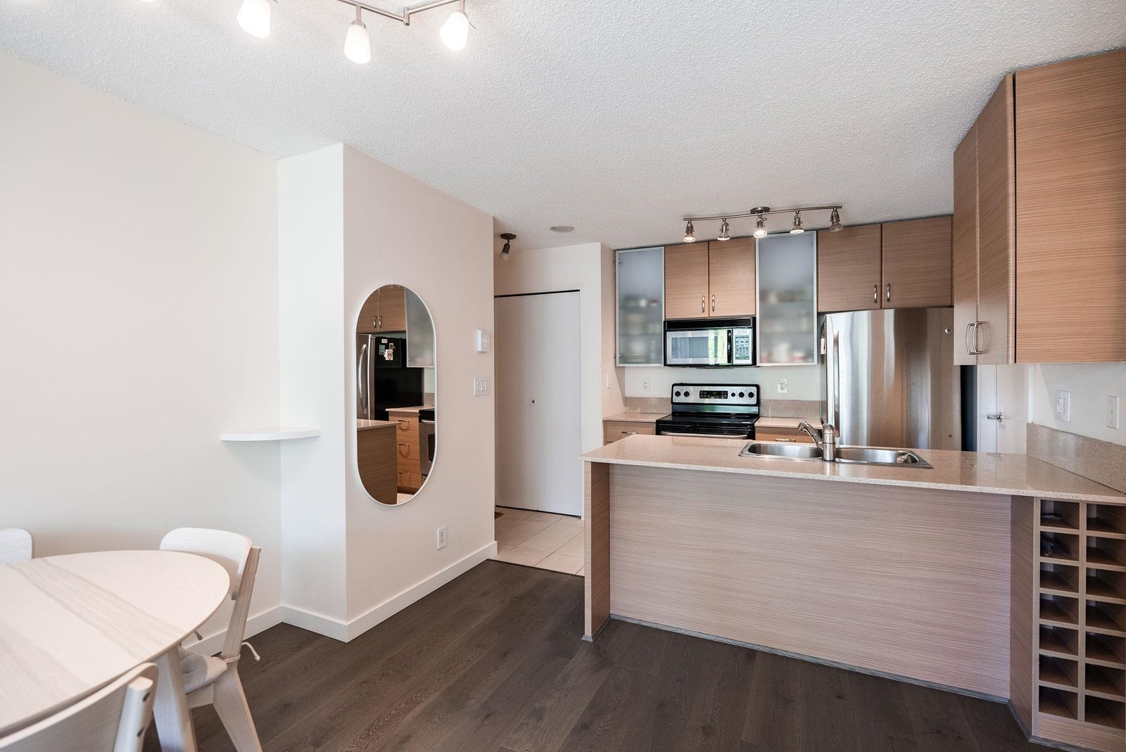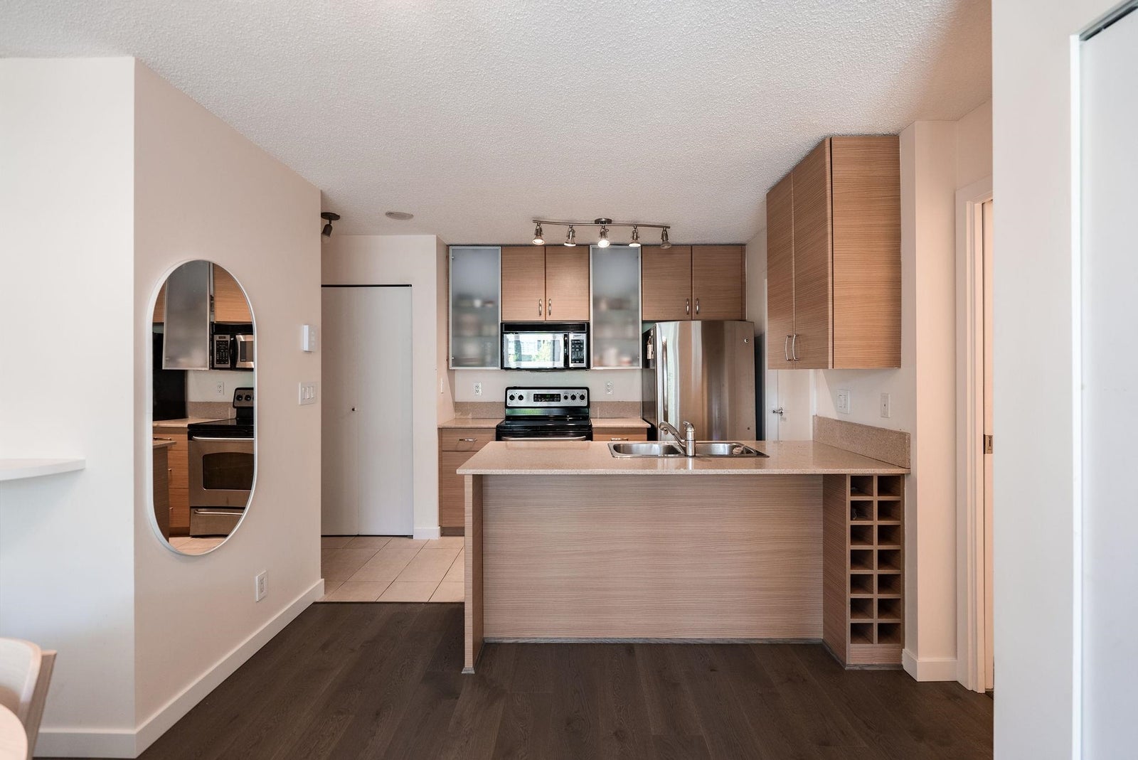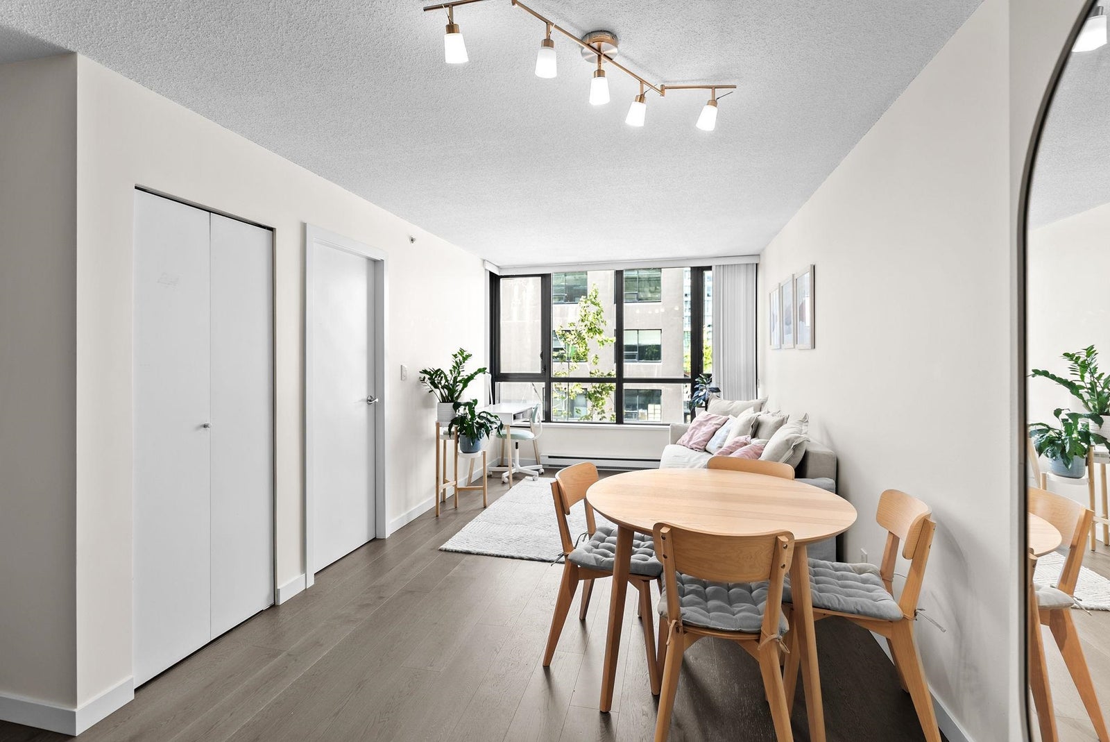 Offering the perfect starter home in a prime Yaletown location! This one-bedroom plus den suite efficiently uses the 586 square feet of it has to offer with generous room sizes throughout and ample storage space. The open kitchen features FULL-SIZE stainless steel appliances and a peninsula island with breakfast bar and built-in wine rack that overlooks the living area large enough to have a proper living room AND dining table. The den off of the kitchen is perfect for a walk-in pantry or additional in-suite storage space. Situated in a well-run building that offers concierge service, an exercise room, meeting room, night security and that allows pets and rentals. One block from transit and Yaletown's award-winning restaurants, bars and shops.