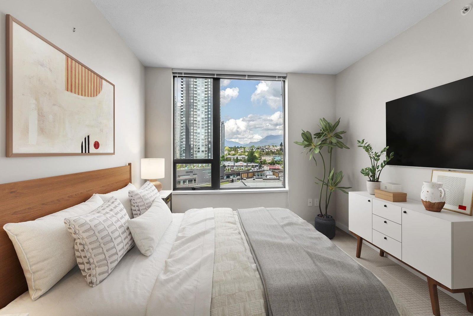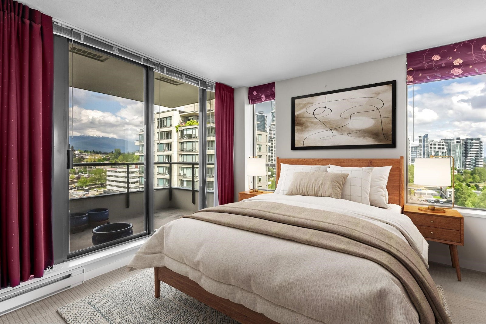 Welcome to 'Tandem - Tower B' built by award-winning developer, Anthem. This 2bed/2bath home offers bedrooms on opposite sides of the suite to ensure more privacy, a cozy f/p in the living room, large windows throughout to allow the beautiful park, mountain & city views to be enjoyed from every angle of the home & an open kitch w/ granite counters, s/s appliances & convenient breakfast bar. This well-run development has fantastic amenities which incl a party room, lounge w/ kitchenette & pool table, BBQ area w/ outdoor seating, a private garden w/ green space & playground, hot tub, sauna, steam room & gym. Situated in the desirable Brentwood Park neighbourhood within steps to Gilmore Skytrain Station, shops, & few minutes to Amazing Brentwood. Opens: Sat, Feb 28th & Sun, Mar 1st from 2-4pm