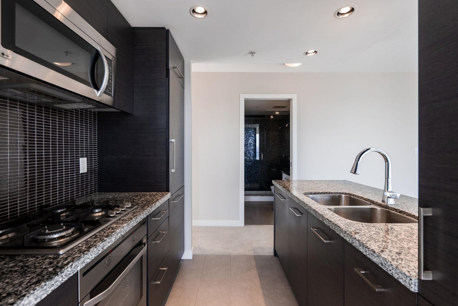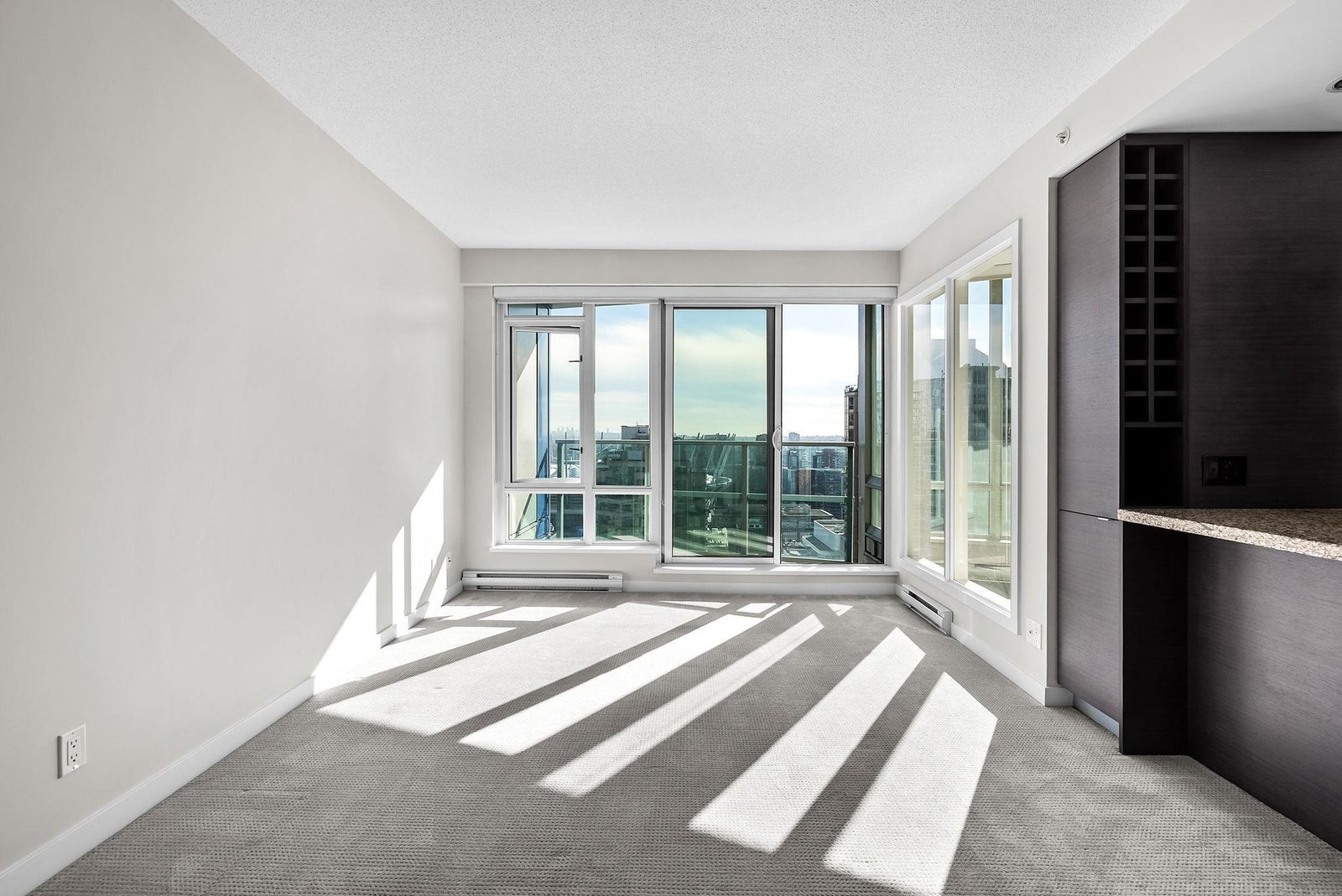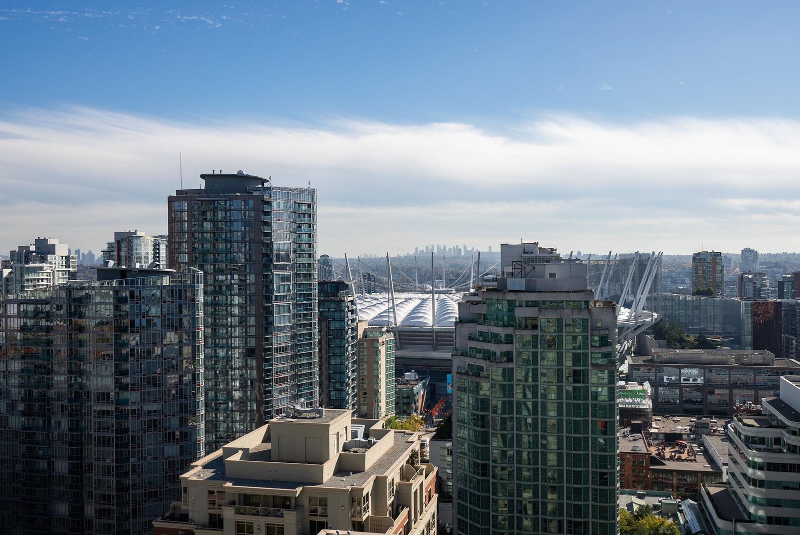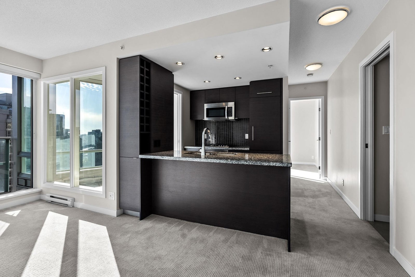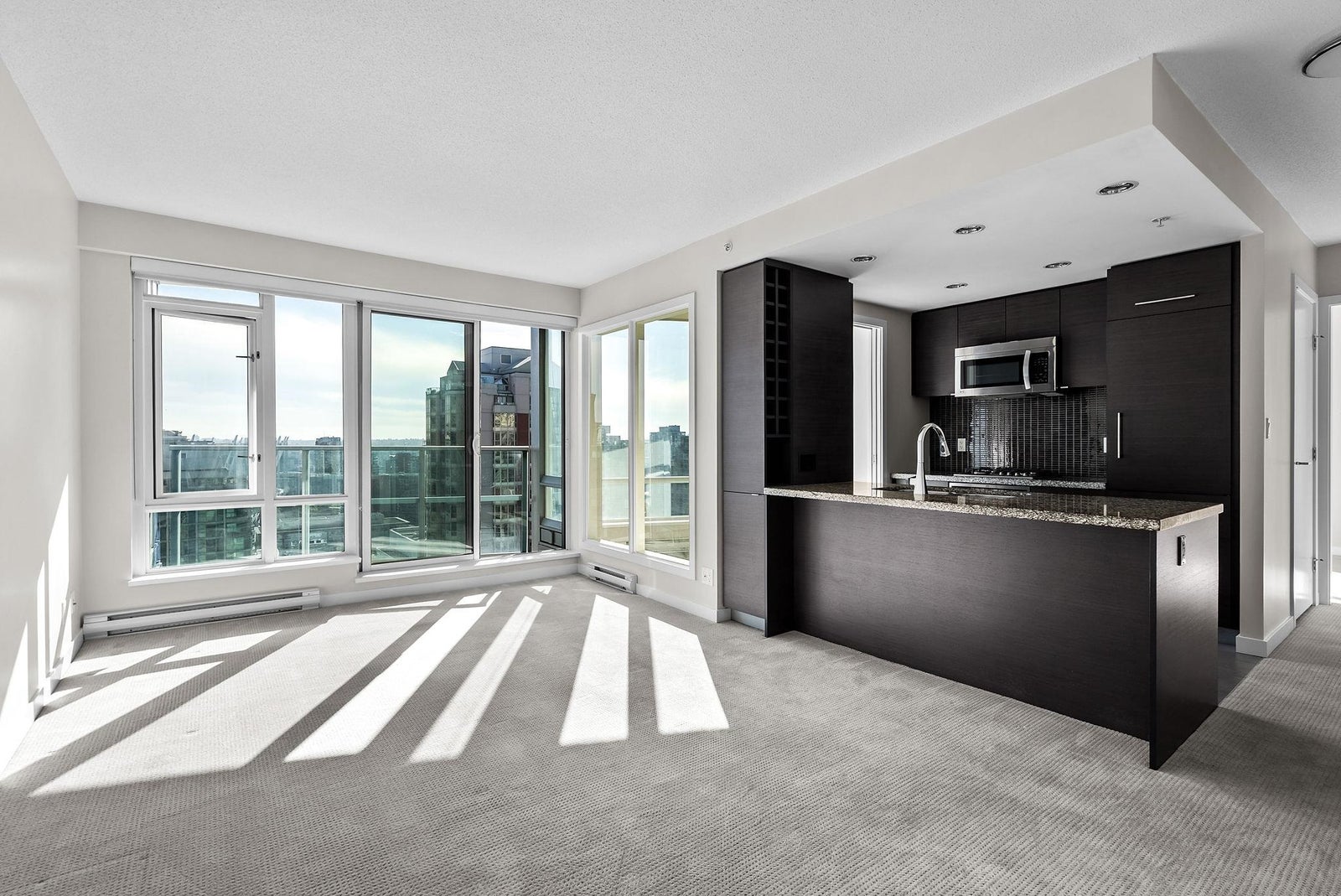 'Atelier' on Robson - one of DT Van's most convenient & desirably located buildings. This 1bed+solarium+den home offers an open concept layout w/ floor-to-ceiling windows, making for a commodious space w/ gorgeous views of DT, BC Place, Metrotown & through to Mount Baker. Offering a beautiful kitchen with granite countertops, s/s appliances with gas cooktop, dark cabinetry, a spacious breakfast bar and built-in wine rack. This well-run building offers great amenities such as a bike room, meeting room, party room, 24-hour concierge, fitness centre w/ yoga and spin studio, steam room and tranquil rooftop garden. One parking stall is included and just steps away from Robson Street eats, Rogers Arena, BC Place, Vancouver Library, IGA & more! Open House: Sunday, December 7th from 2-3:30pm.